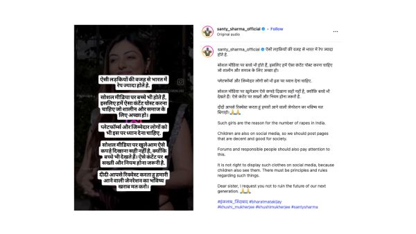 While reacting to this, Santy made a contentious statement suggesting that “girls like this are the reason for the increasing number of rape cases in India.” There were some strong reactions from people online to his remark; some users supported his call for more responsible behaviour by girls on social media, while others deemed the statement inappropriate and callous. The resulting discussion has enlarged into the issue relating to the ethics of social media, the accountability of society, and balancing the freedom of expression with the responsibility towards society.